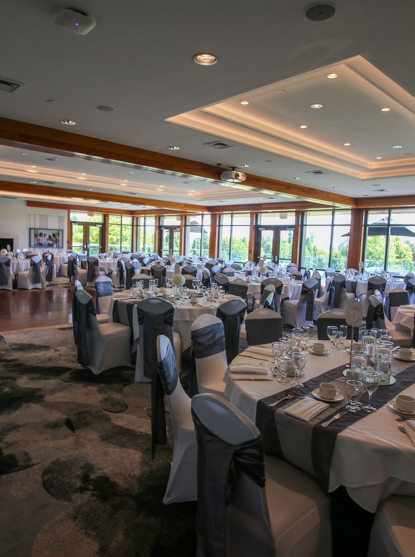 Picture exchanging vows surrounded by breathtaking natural beauty, with views of the majestic Mount Baker and our award-winning golf course, all from the comfort of our elegant banquet room. Our clubhouse and banquet hall provide a sophisticated ambiance to welcome your guests. After the ceremony, indulge in a sumptuous buffet featuring fresh, seasonal dishes and fine wines, all served with a touch of elegance. We are dedicated to crafting a wedding experience that your guests will cherish and discuss for years to come.